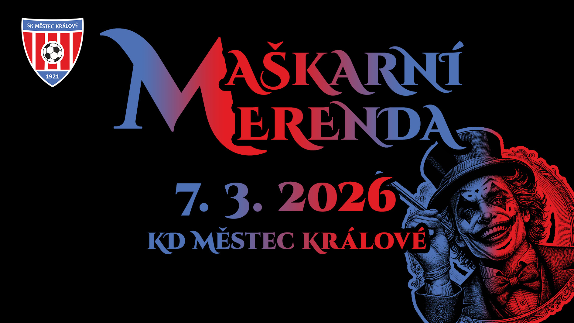 « Všechny Akce Maškarní merenda 2026 7.Březen 20:00 - 8.Březen 2:00 200Kč « Valná hromada SKMK 2026 Dětské maškarní 2026 » Maškarní merenda 2026 Přidat do kalendáře Kalendář Google iCalendar Outlook 365 Outlook Live Podrobnosti Zahájení: 7.Březen 20:00 Ukončení: 8.Březen 2:00 Cena: 200Kč Místo konání Kulturní dům Městec Králové Palackého 117 Městec Králové, Středočeský 289 03 Czech Republic + Google Mapa Pořadatelé SK Městec Králové Fotbalový oddíl